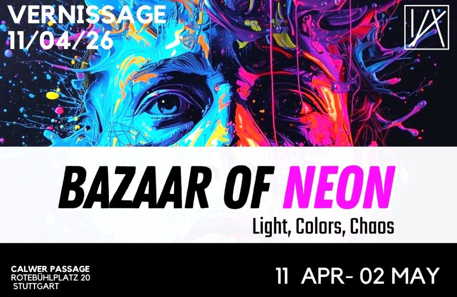 Am 11. April 2026 bin ich mit einer ausgewählten Arbeit in der Neonbazaar Art Gallery in Stuttgart vertreten. Die Ausstellung bringt unterschiedliche künstlerische Positionen zusammen und schafft einen lebendigen Raum für zeitgenössische, experimentelle und mutige Bildsprachen. Ich freue mich sehr, Teil dieses Formats zu sein und meine Mixed‑Media‑Arbeiten dort zu zeigen.